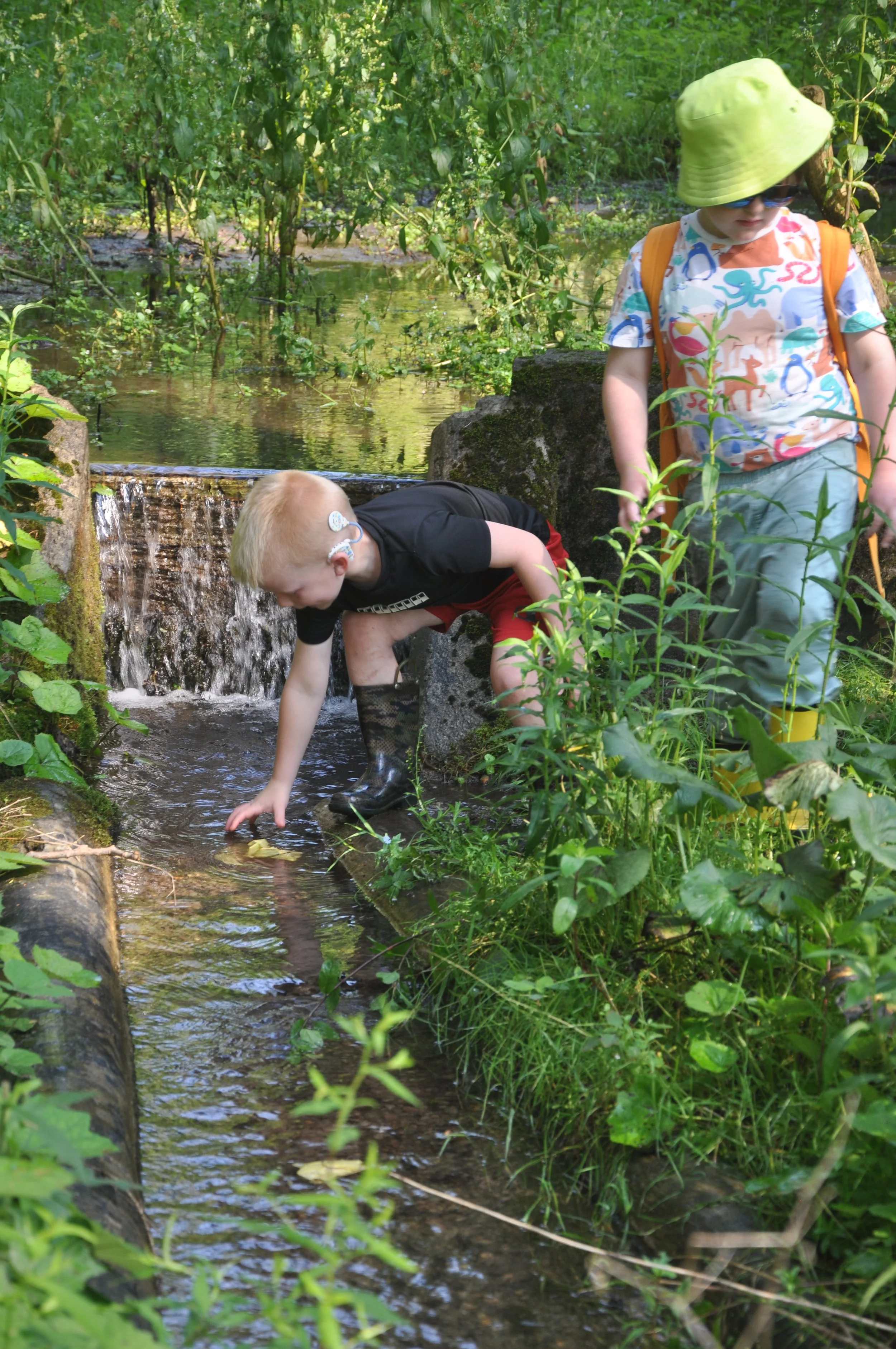 Our first week of camp draws to a close today. The theme this week was The Joys of Summer, and we did so many of those things that make summer a fantastic memory: made and flew kites, fed the fish in the trout ponds, made and raced boats, found critters in the ponds, played lots of games, and built forts.